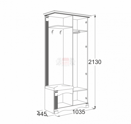 Размеры:(ШхВхГ): 1035х2130х445 мм
