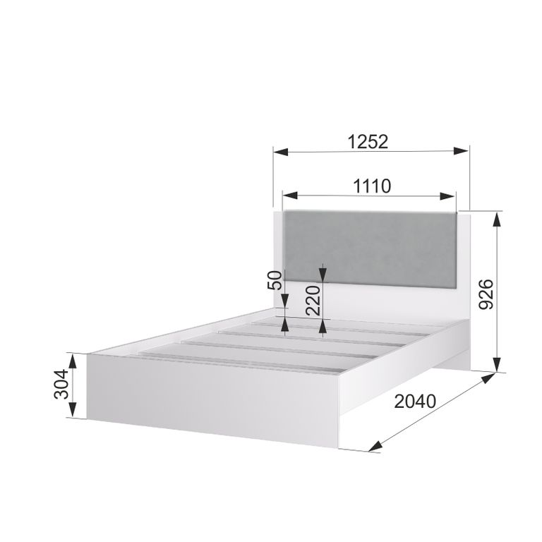 Размеры кровати с основанием : 1252*2040*926 мм