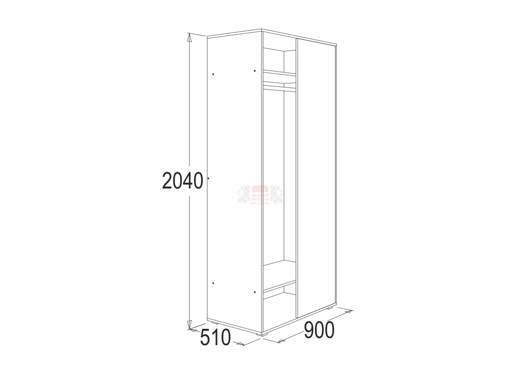 Размеры (Ш*В*Г)900х2040х510 мм