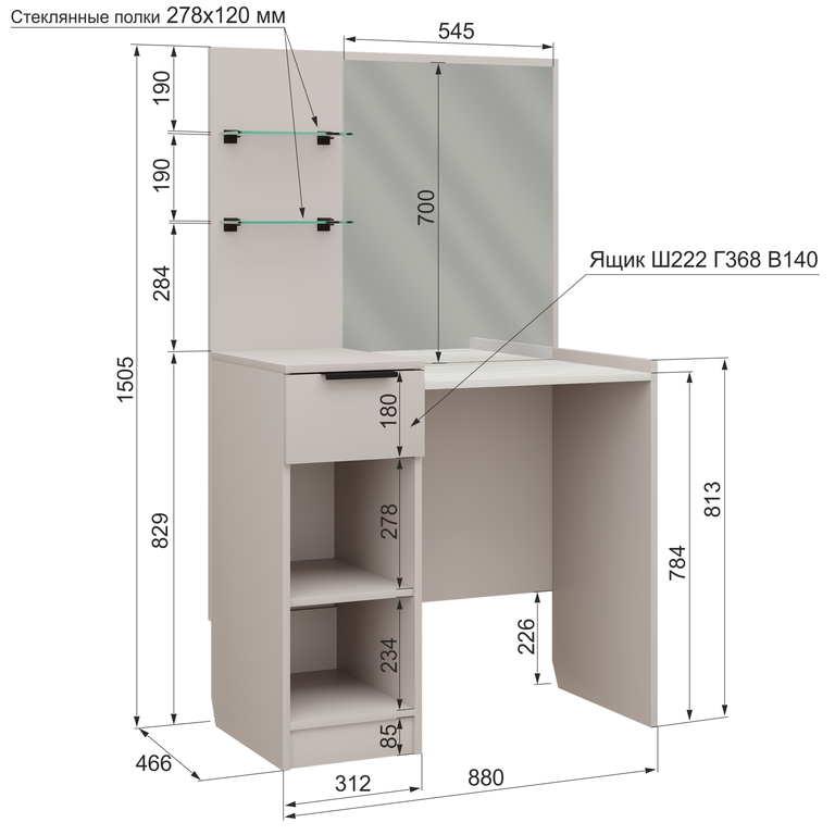 Размеры(Ш*В*Г):880*1505*466 мм
