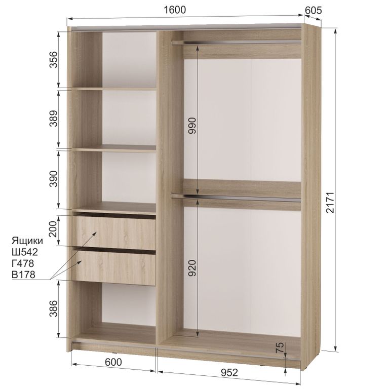 Размеры(Ш*В*Г) : 1600*2171х605 мм