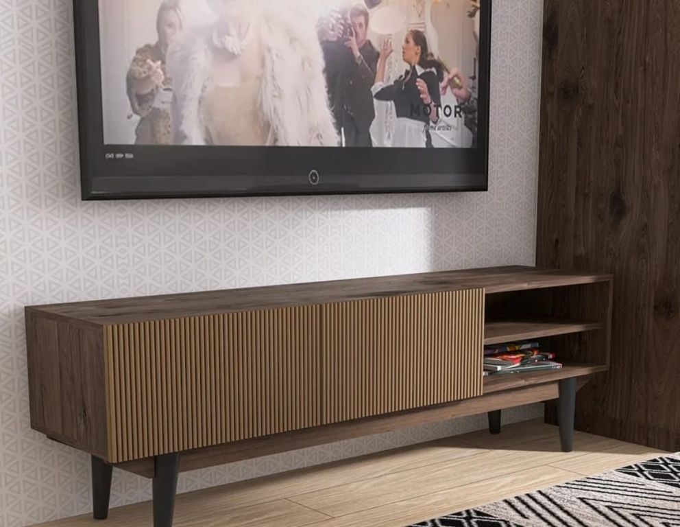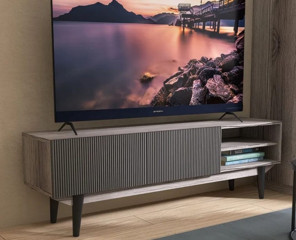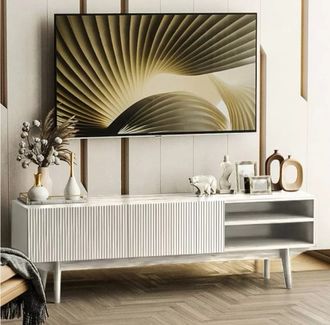 Тумба под телевизор на ножках купить в Казани, Тумба ТВ с рифлеными фасадами , тумба тв белая, тумба тв шириной 150 см купить в интерент магазине Мебельмар в Казани.